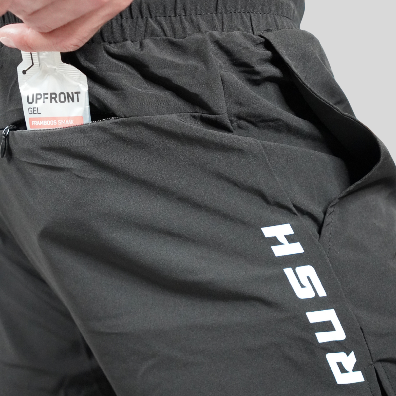 De Rush Active Short is een lichte en functionele 2-in-1 sportshort, speciaal ontworpen voor hardlopen en intensieve trainingen. De buitenlaag van polyester en spandex biedt optimale bewegingsvrijheid, terwijl de aansluitende binnenbroek zorgt voor extra ondersteuning en comfort.